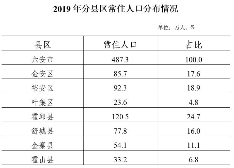 2019年六安市人口变动情况抽样调查主要数据公报
